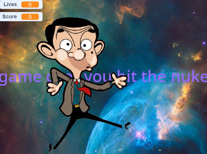 Your friend Mr Bean has been stuffed in a nuclear bomb you have to save him by getting 100 points Press arrow keys to move your penguin. Don't hit the nuke or you will go to space. Don't hit the snow man, he wants to paralyze you